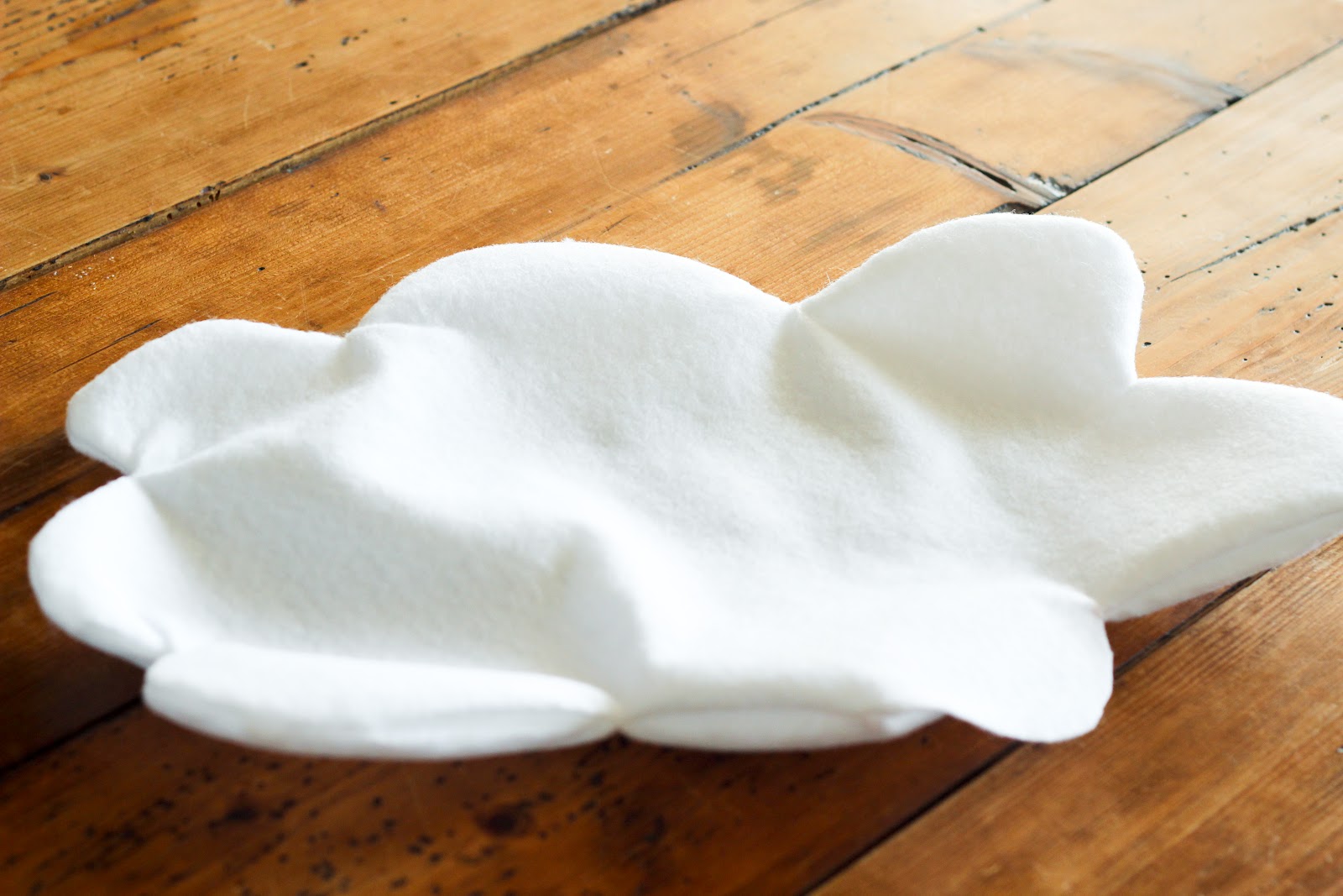 Pin the 2 sides of your cloud together and sew about a 1/4" in. Make sure you leave an opening large enough to flip it right side out.